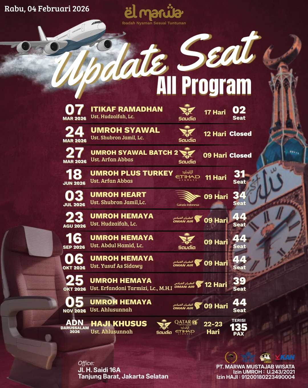 Update Seat Per Tgl 04 Feb 2026