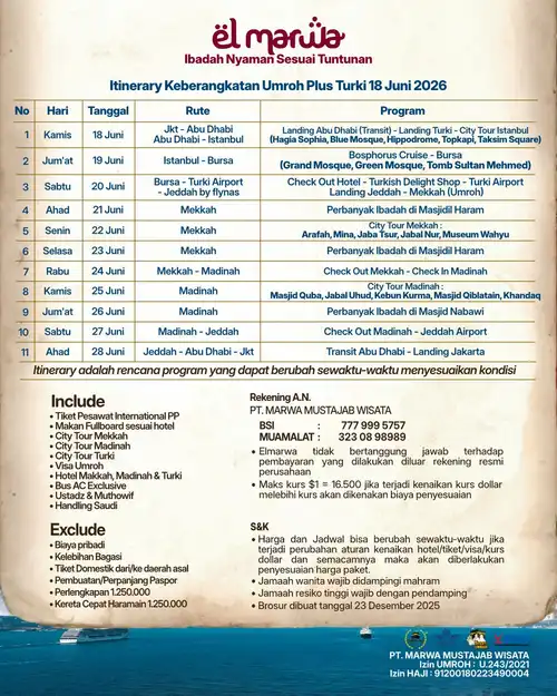 Harga dapat berubah sewaktu-waktu menyesuaikan kondisi, serta kebijakan Pemerintah Saudi & Indonesia