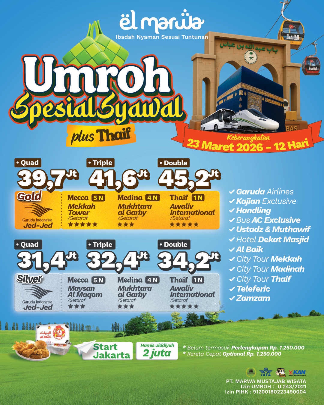 - Harga dapat berubah sewaktu-waktu menyesuaikan kondisi, serta kebijakan Pemerintah Saudi & Indonesia